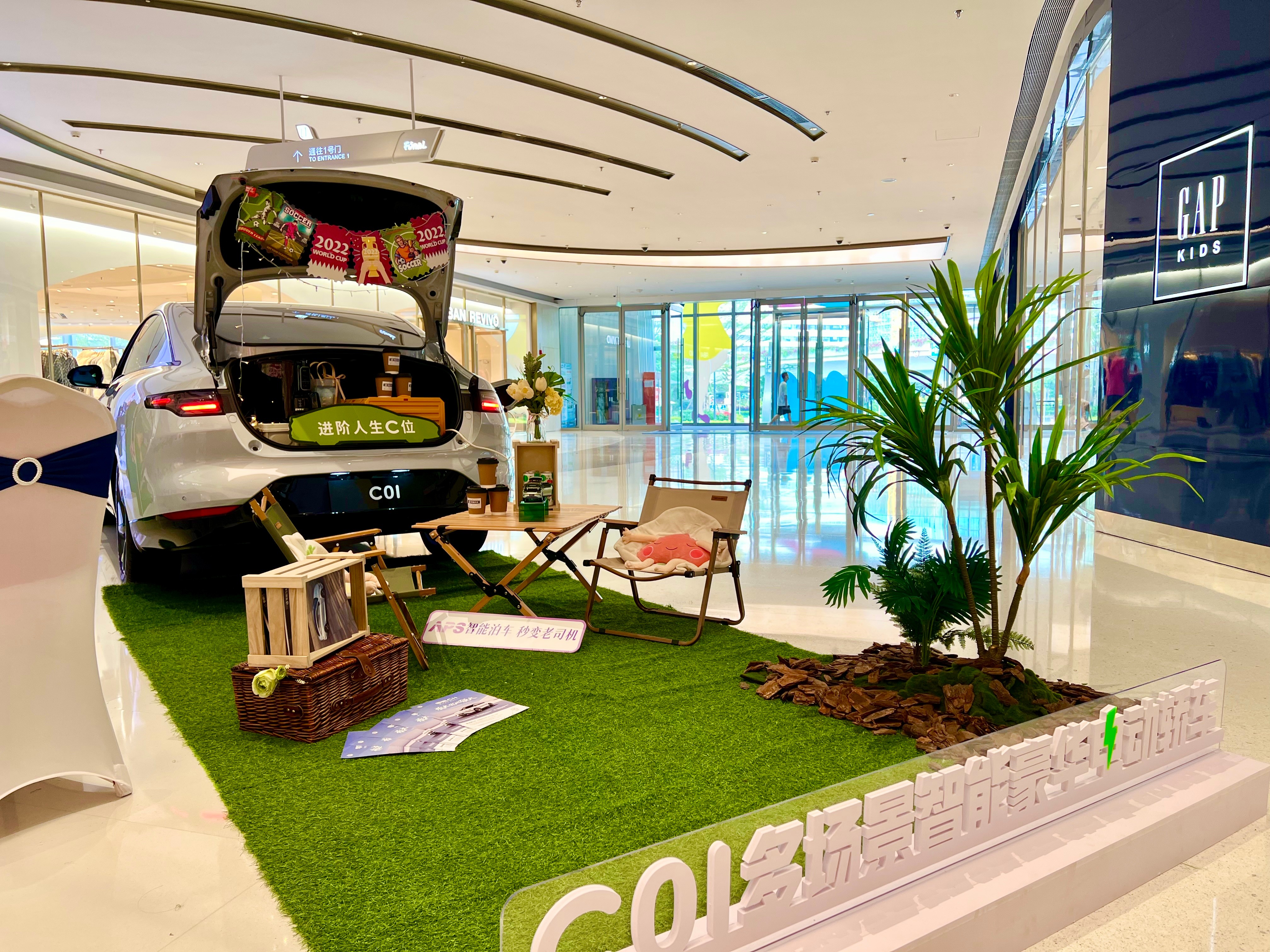 開業(yè)當(dāng)天正值世界杯足球賽期間,現(xiàn)場(chǎng)準(zhǔn)備了DIY足球、背景板等供顧客涂鴉與合影。另外還有精致的餐點(diǎn)和豐厚的訂車禮品,有許多顧客到店體驗(yàn),不乏有現(xiàn)場(chǎng)下訂成為零跑汽車準(zhǔn)車主的。